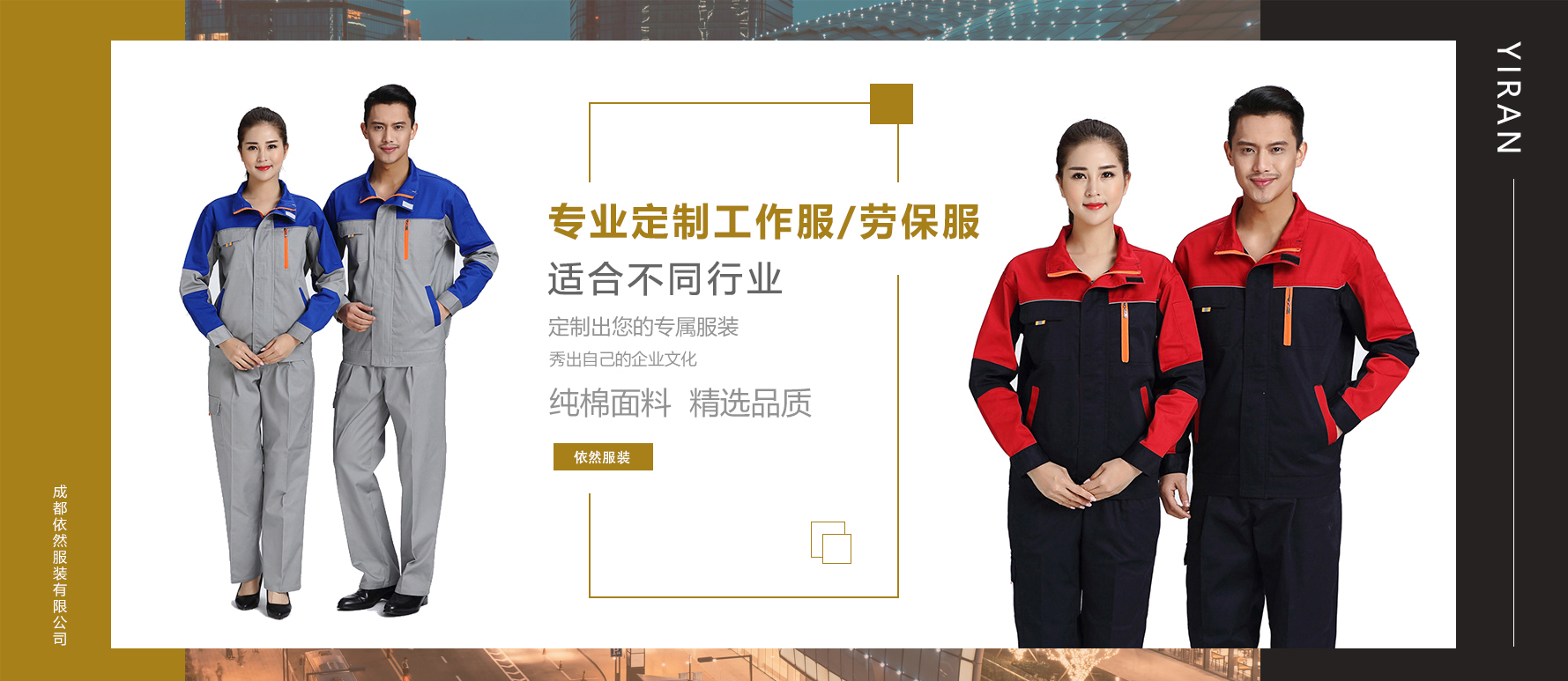 成都依然服裝有限公司座落于偉大的天府之國成都,公司是一家專業(yè)從事定制銷售各類企業(yè)工廠服裝的企業(yè)。其公司的主要產(chǎn)品包含有(廠服,勞保服,工作服,牛仔服,體恤,廣告衫,沖鋒衣,衛(wèi)衣,反光馬甲,宣傳馬甲,西服,襯衫,職業(yè)工裝,廣告帽,安全帽,手套,勞保鞋,保安服,保潔服,餐飲服,園服,圍裙大褂,等各類團體服裝)。恭迎各企事業(yè)單位的來電咨詢,期待能與貴單位長遠合作發(fā)…